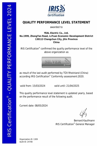 2024年5月8日,凤凰联盟正式通过TUV莱茵、IMC(IRIS管理中心)及UNIFE(欧洲铁路行业协会)认证审查,获得IRIS银牌绩效等级评定证书。